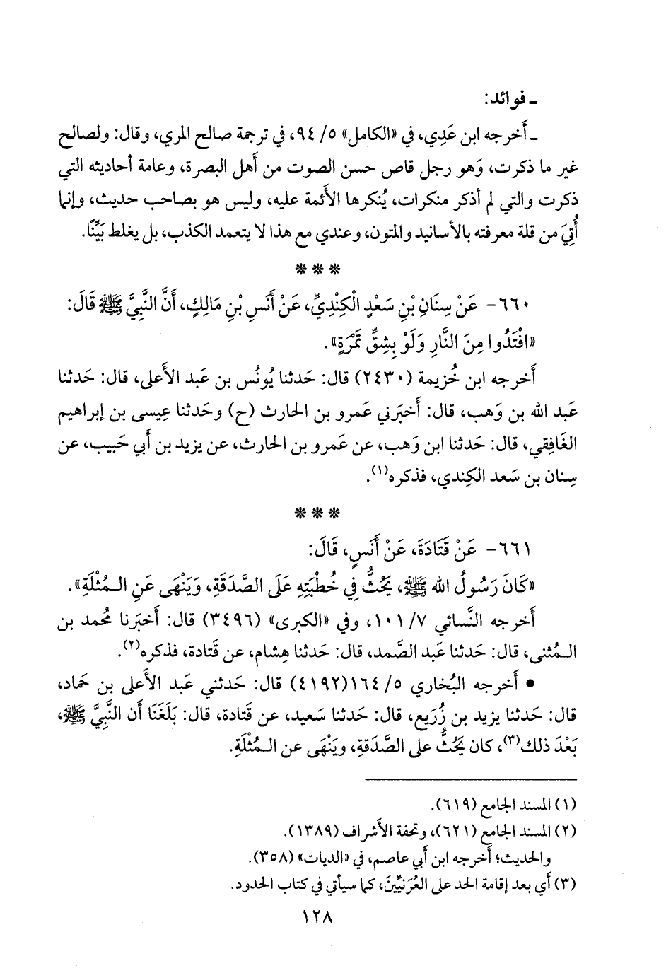 ٦٦٠ - عن سنان بن سعد الكندي، عن أَنس بن مالك، أن النبي صَلى الله عَليه وسَلم قال: