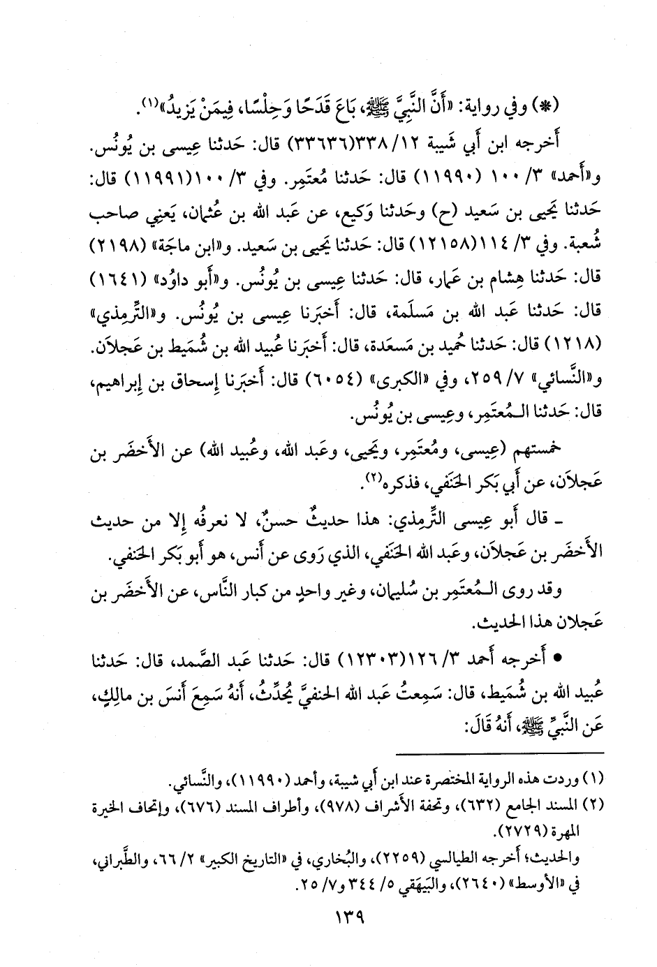 ـ قال التِّرمِذي: هذا حديثٌ حسنٌ، لا نعرفه إلا من حديث الأخضر بن عَجلان، وعبد الله الحنفي، الذي روى عن أَنس، هو أَبو بكر الحنفي.