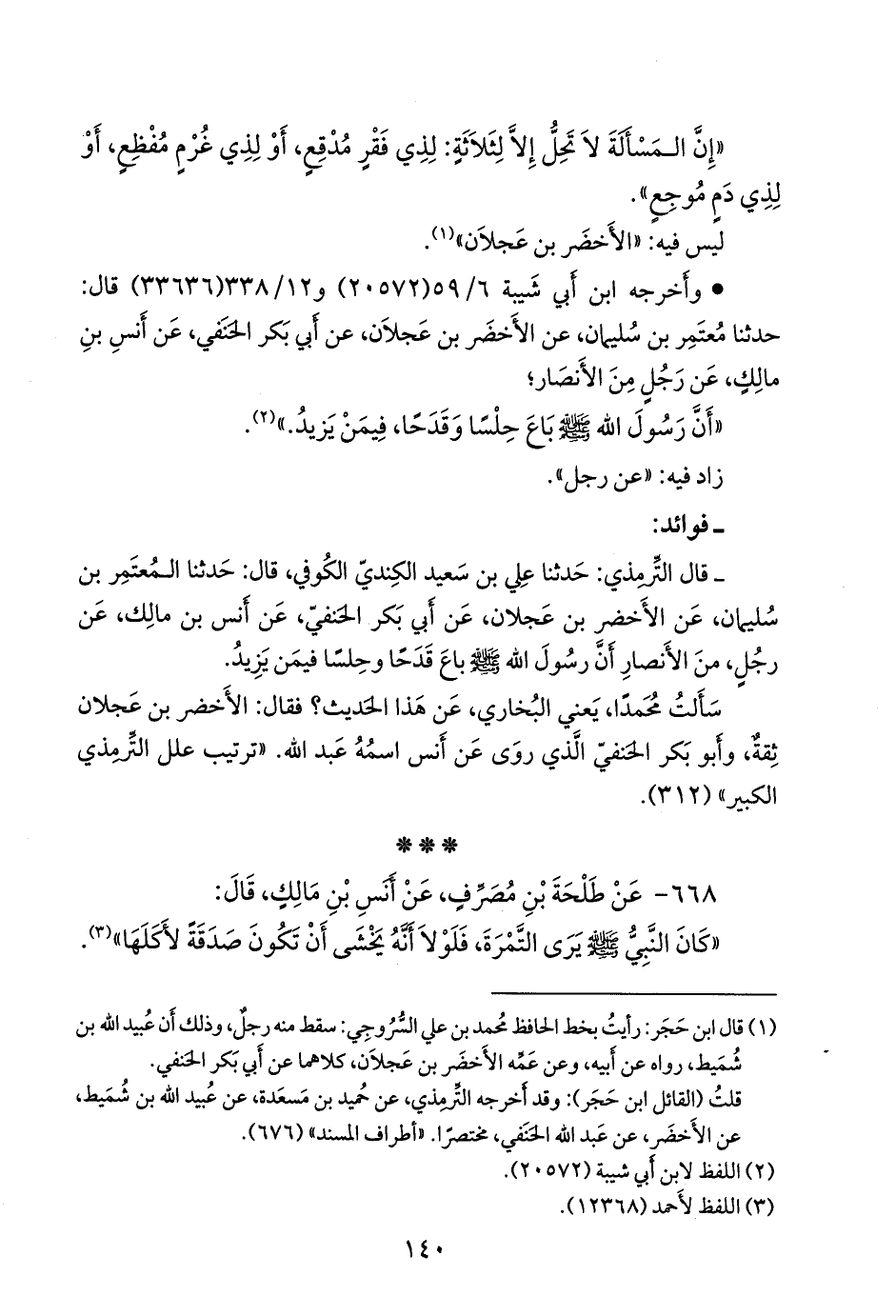 ٦٦٨ - عن طلحة بن مُصَرِّف، عن أَنس بن مالك، قال: