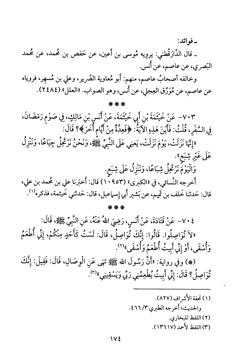 - سُئِل الدارقُطني عن حديث عاصم الأَحوَل، عن أَنس، قال رسول الله صَلى الله عَليه وسَلم: ذهب المفطرون بالأَجر.