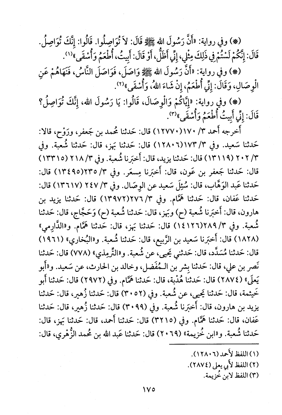 وفي (٢٩٧٢) قال: حدثنا أَبو خيثمة، قال: حدثنا يحيى، عن شعبة. وفي (٣٠٥٢) قال: حدثنا زهير، قال: حدثنا يزيد بن هارون، قال: أخبرنا شعبة. وفي (٣٠٩٩) قال: حدثنا زهير، قال: حدثنا عفان، قال: حدثنا همام. وفي (٣٢١٥) قال: حدثنا أحمد، قال: حدثنا بَهز، قال: حدثنا شعبة. و «ابن خزيمة» (٢٠٦٩) قال: حدثنا عبد الله بن محمد الزُّهْري، قال: