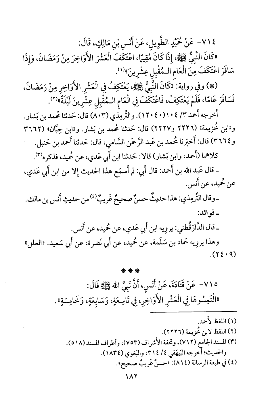 ٧١٥ - عن قتادة، عن أَنس، أن نبي الله صَلى الله عَليه وسَلم قال:
