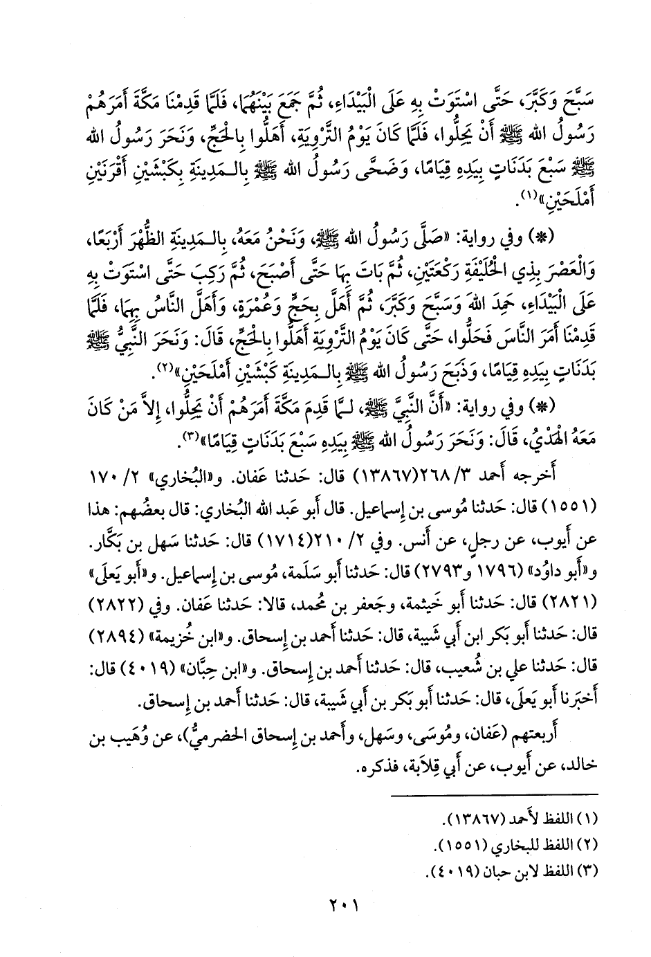 أخرجه أحمد (١٣٨٦٧) قال: حدثنا عفان. و «البخاري» (١٥٥١) قال: حدثنا موسى بن إسماعيل. وفي (١٧١٤) قال: حدثنا سهل بن بكار. و «أَبو داود» (١٧٩٦ و ٢٧٩٣) (¬١) قال: حدثنا أَبو سلمة، موسى بن إسماعيل. و «أَبو يَعلى» (٢٨٢١) قال: حدثنا أَبو خيثمة، وجعفر بن محمد، قالا: حدثنا عفان. وفي (٢٨٢٢) قال: حدثنا أَبو بكر بن أبي شيبة، قال: حدثنا أحمد بن إسحاق. و «ابن خزيمة» (٢٨٩٤) قال: حدثنا علي بن شعيب، قال: حدثنا أحمد بن إسحاق. و «ابن حِبَّان» (٤٠١٩) قال: أخبرنا أَبو يَعلى، قال: حدثنا أَبو بكر بن أبي شيبة، قال: حدثنا أحمد بن إسحاق.