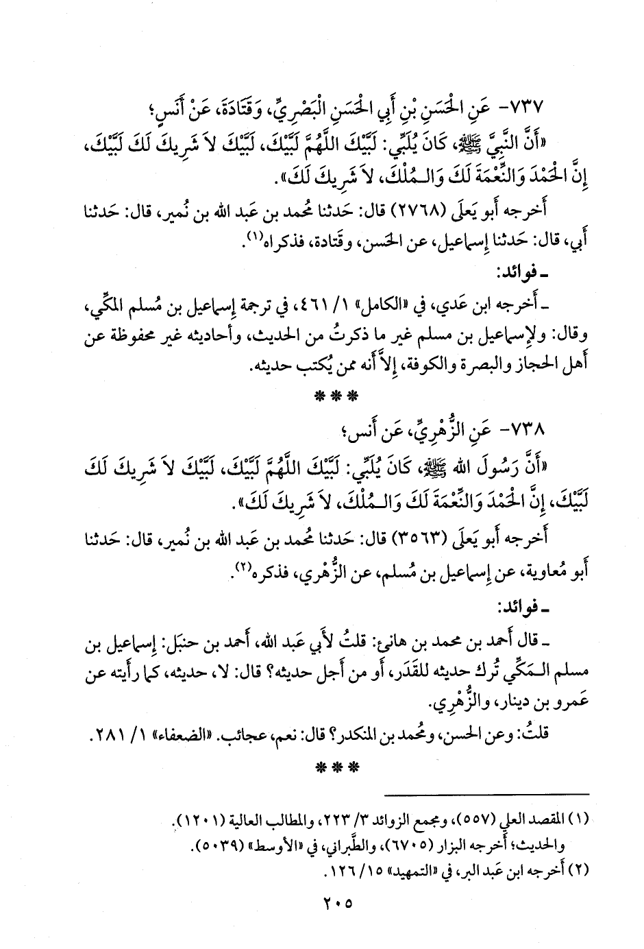 أخرجه أَبو يَعلى (٣٥٦٣) قال: حدثنا محمد بن عبد الله بن نُمير، قال: حدثنا أَبو معاوية، عن إسماعيل بن مسلم، عن الزُّهْري، فذكره (¬١).
