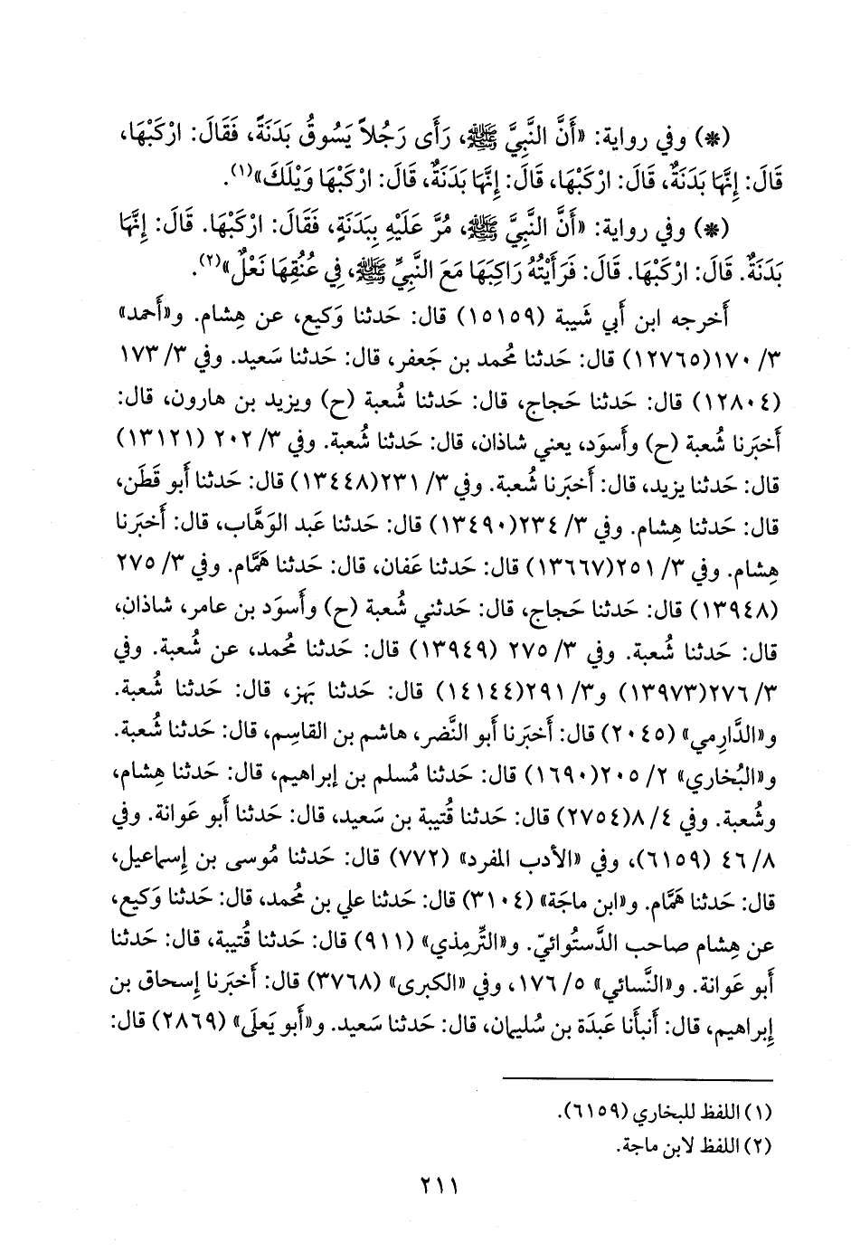 حدثنا هُدبة، قال: حدثنا همام. وفي (٣١٠٦) قال: حدثنا زهير، قال: حدثنا عفان، قال: حدثنا همام. وفي (٣١٦٧) قال: حدثنا أَبو موسى، قال: حدثنا ابن أَبي عَدي، عن سعيد. وفي (٣١٩٤) قال: حدثنا عُبيد الله، قال: حدثنا خالد، قال: حدثنا سعيد. وفي (٣٢١٧) قال: حدثنا أحمد، قال: حدثنا أَبو داود، قال: حدثنا شعبة. وفي (٣٢١٨) قال: حدثنا أحمد، قال: حدثنا شَبَابة، قال: حدثنا شعبة. و «ابن خزيمة» (٢٦٦٢) قال: حدثنا بُندَار، قال: حدثنا أَبو داود، قال: حدثنا شعبة (ح) وحدثنا علي بن خَشرَم، قال: حدثنا عيسى، عن شعبة (ح) وحدثنا يحيى بن حكيم، قال: حدثنا ابن أَبي عَدي، عن شعبة وسعيد (ح) وحدثنا بُندَار، قال: حدثنا ابن أَبي عَدي، عن سعيد.