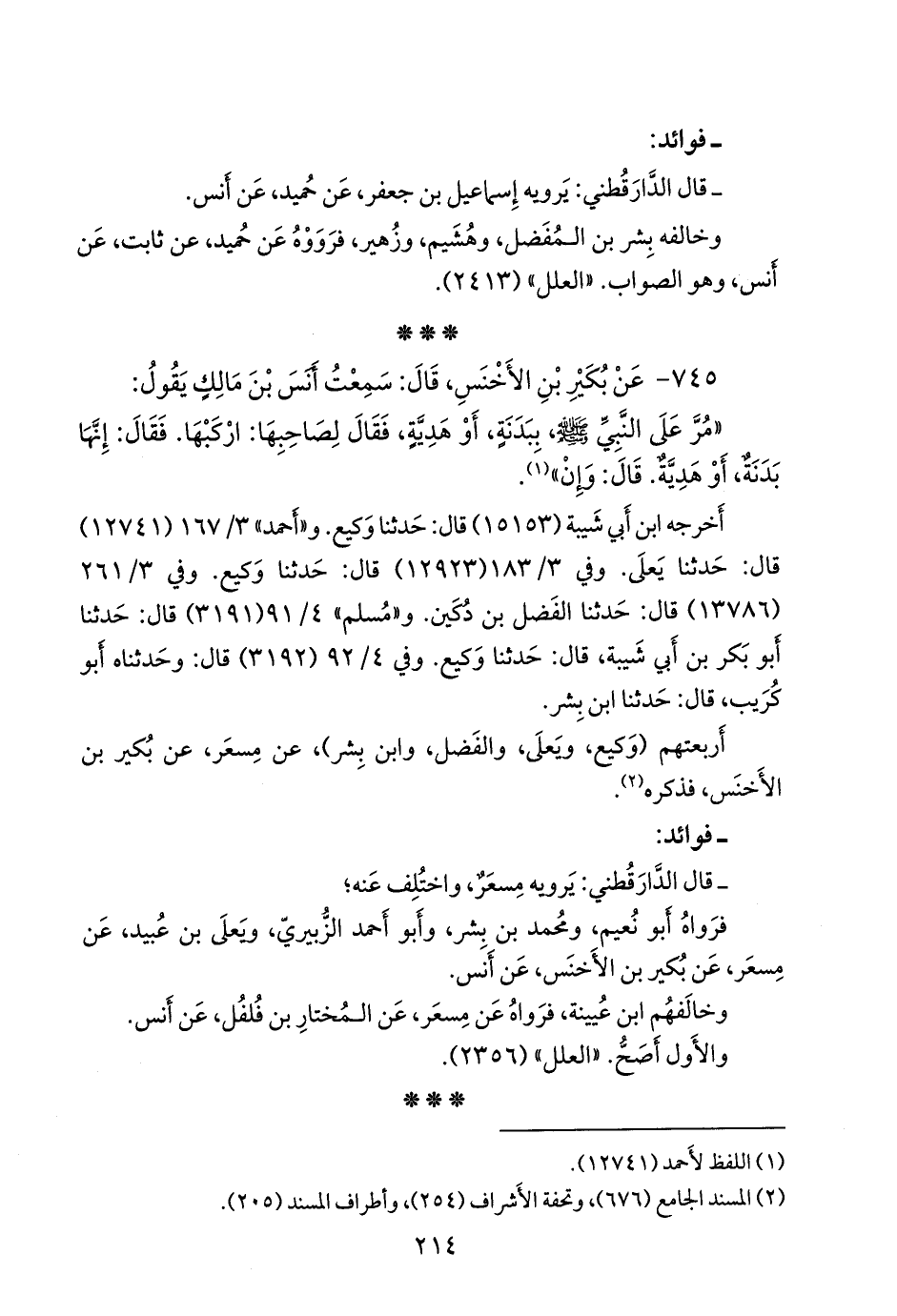 - قال الدارقُطني: يرويه إِسماعيل بن جعفر، عن حُميد، عن أَنس.