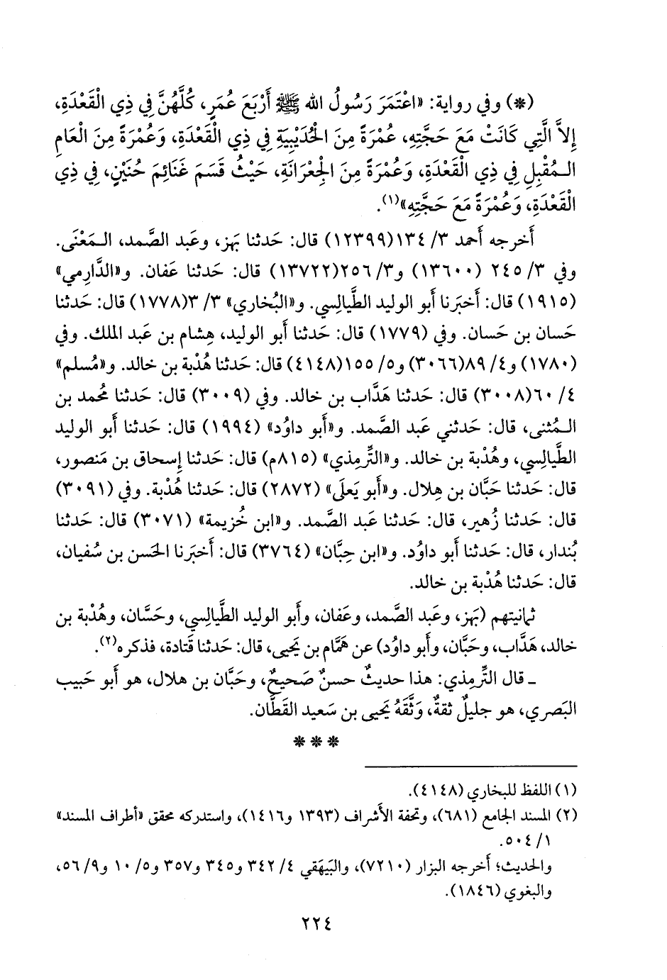 - قال التِّرمِذي: هذا حديثٌ حسنٌ صحيحٌ، وحَبَّان بن هلال، هو أَبو حبيب البصري، هو جليل ثقة، وثقه يحيى بن سعيد القطان.