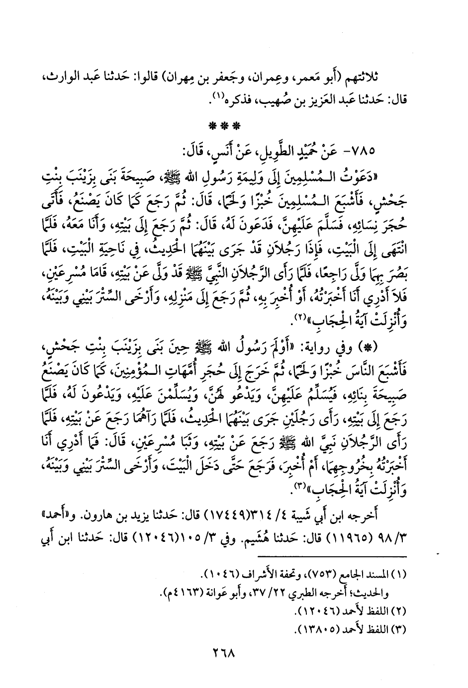 عَدي. وفي ٣/ ٢٠٠ (١٣١٠٣) قال: حدثنا يزيد بن هارون. وفي ٣/ ٢٦٢ (١٣٨٠٥) قال: حدثنا عبد الله بن بكر. و «البخاري» ٦/ ١١٩ (٤٧٩٤) قال: حدثنا إسحاق بن منصور، قال: أخبرنا عبد الله بن بكر السهمي. قال البخاري: وقال ابن أبي مريم: أخبرنا يحيى، قال: حدثني حميد، سمع أنسا (¬١)، عن النبي صَلى الله عَليه وسَلم. وفي ٧/ ٢١ (٥١٥٤) قال: حدثنا مُسدد، قال: حدثنا يحيى. و «النَّسَائي» في «الكبرى» (٦٨٨١ و ١٠٠٣٠) قال: أخبرنا محمد بن المثنى، عن خالد. و «أَبو يَعلى» (٣٨٦١) قال: حدثنا أَبو خيثمة، قال: حدثنا يزيد بن هارون. و «ابن حِبَّان» (٤٠٦٢) قال: أخبرنا الفضل بن الحُبَاب، قال: حدثنا مُسدد، عن يحيى.