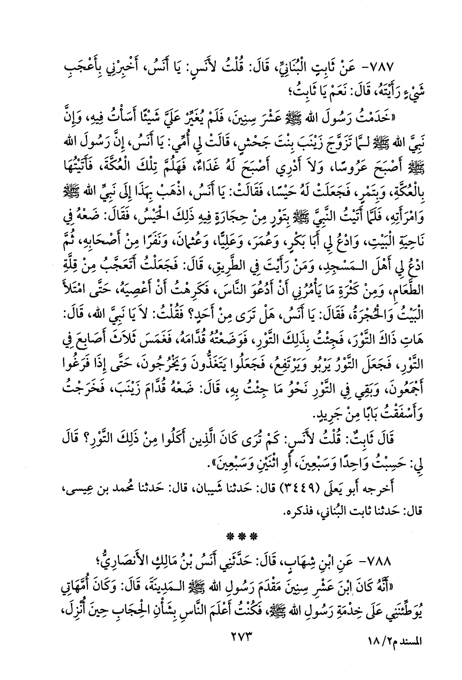 ٧٨٨ - عن ابن شهاب، قال: حدثني أَنس بن مالك الأَنصاري؛
