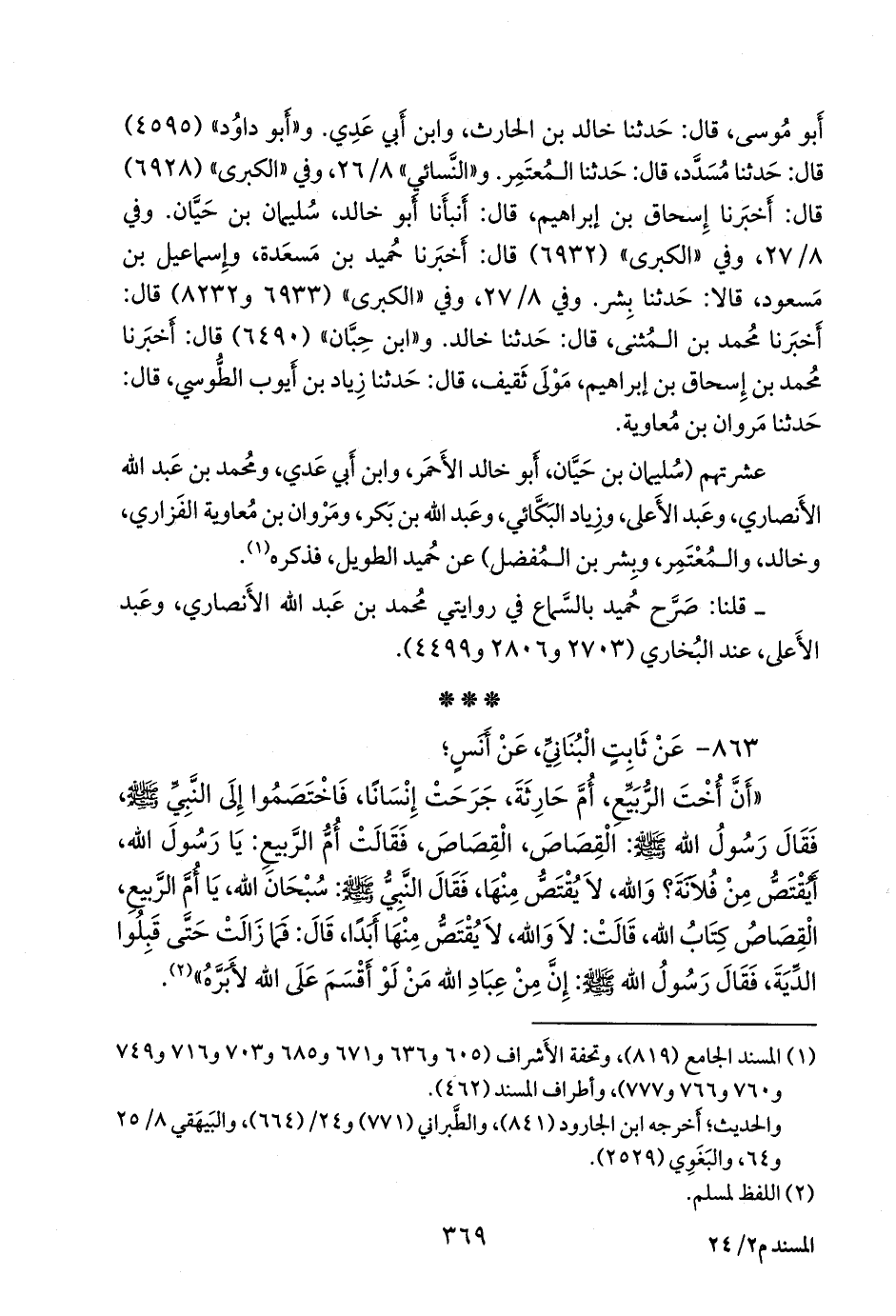 (¬٣) المسند الجامع (٨٢٠)، وتحفة الأشراف (٣٣١)، وأطراف المسند (٢٤١).