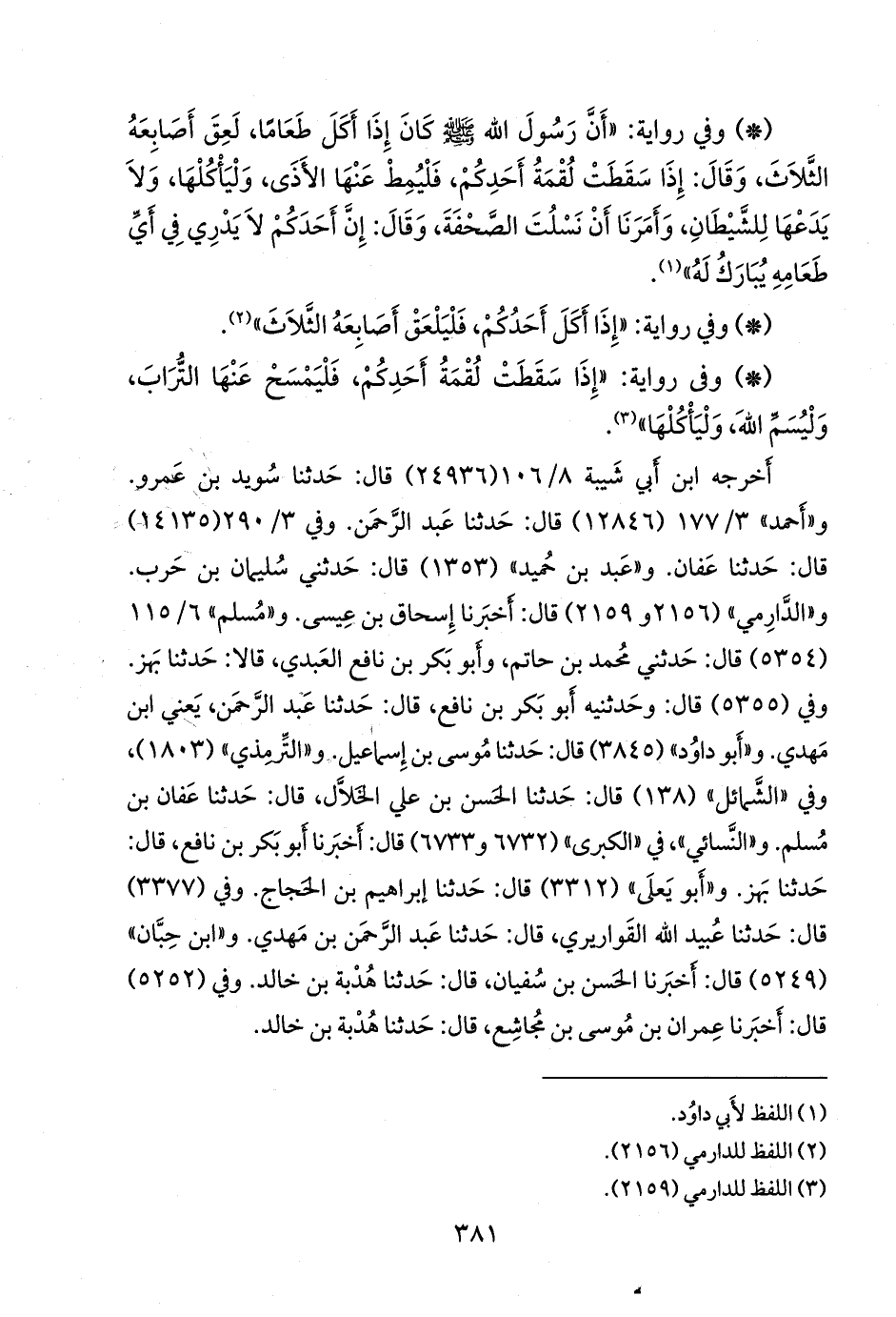 و «الدَّارِمي» (٢١٥٦ و ٢١٥٩) قال: أخبرنا إسحاق بن عيسى. و «مسلم» ٦/ ١١٥ (٥٣٥٤) قال: حدثني محمد بن حاتم، وأَبو بكر بن نافع العبدي، قالا: حدثنا بَهز. وفي (٥٣٥٥) قال: وحدثنيه أَبو بكر بن نافع، قال: حدثنا عبد الرَّحمَن، يعني ابن مهدي. و «أَبو داود» (٣٨٤٥) قال: حدثنا موسى بن إسماعيل. و «التِّرمِذي» (١٨٠٣)، وفي «الشمائل» (١٣٨) قال: حدثنا الحسن بن علي الخَلَّال، قال: حدثنا عفان بن مسلم. و «النَّسَائي» في «الكبرى» (٦٧٣٢ و ٦٧٣٣) قال: أخبرنا أَبو بكر بن نافع، قال: حدثنا بَهز. و «أَبو يَعلى» (٣٣١٢) قال: حدثنا إبراهيم بن الحجاج. وفي (٣٣٧٧) قال: حدثنا عُبيد الله القواريري، قال: حدثنا عبد الرَّحمَن بن مهدي. و «ابن حِبَّان» (٥٢٤٩) قال: أخبرنا الحسن بن سفيان، قال: حدثنا هُدبة بن خالد. وفي (٥٢٥٢) قال: أخبرنا عمران بن موسى بن مجاشع، قال: حدثنا هُدبة بن خالد.