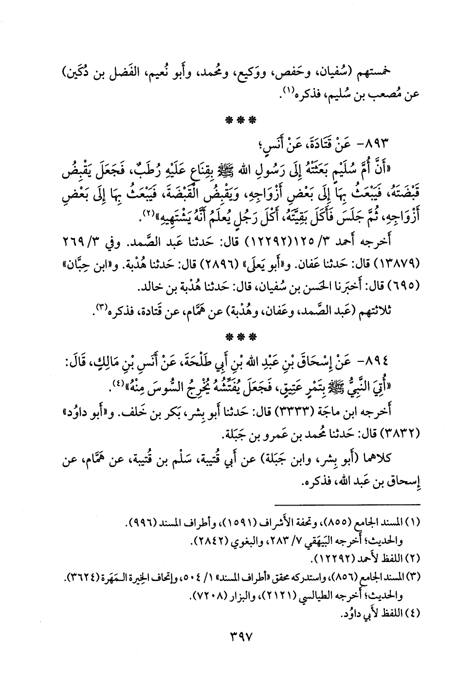 ٨٩٤ - عن إسحاق بن عبد الله بن أبي طلحة، عن أَنس بن مالك، قال: