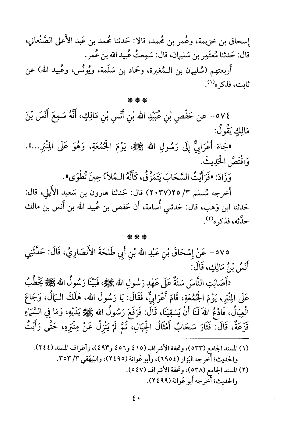 ٥٧٤ - عن حفص بن عُبيد الله بن أَنس بن مالك، أنه سمع أَنس بن مالك يقول: