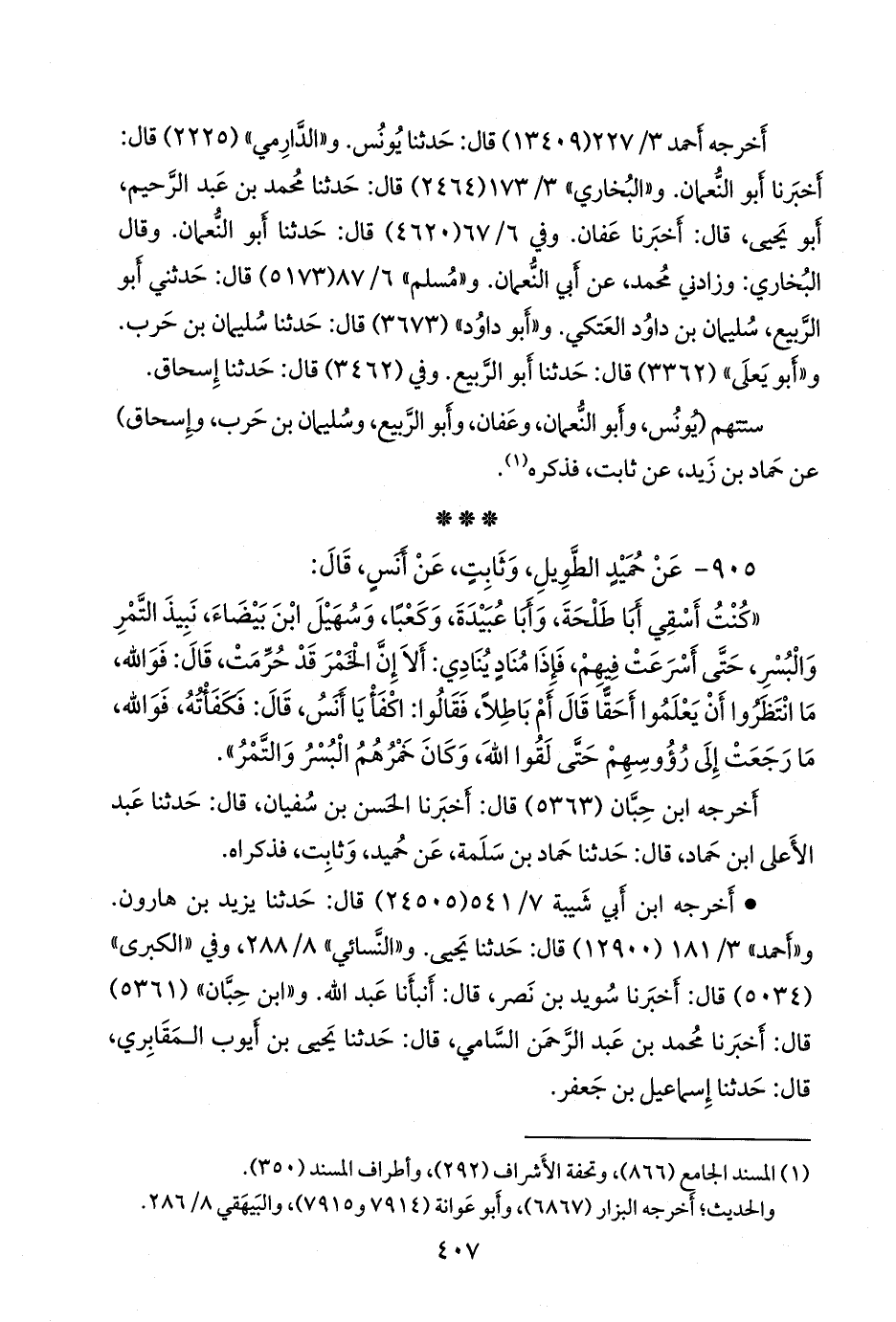 ٩٠٥ - عن حميد الطويل، وثابت، عن أَنس، قال: