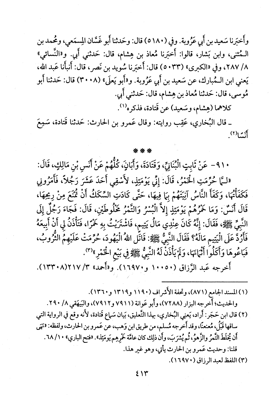 ٩١٠ - عن ثابت البُنَاني، وقتادة، وأبان، كلهم عن أَنس بن مالك، قال: