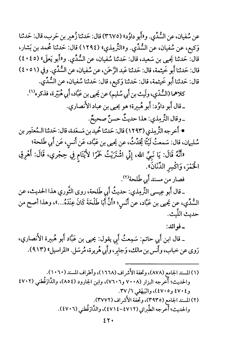 - قال عبد الرَّحمَن بن أبي حاتم الرازي: سمعت أبي يقول: يحيى بن عباد أَبو هبيرة الأَنصاري، روى عن خباب، وأنس بن مالك، وجابر، وأبي هريرة، مرسل. «المراسيل» (٩١٣).
