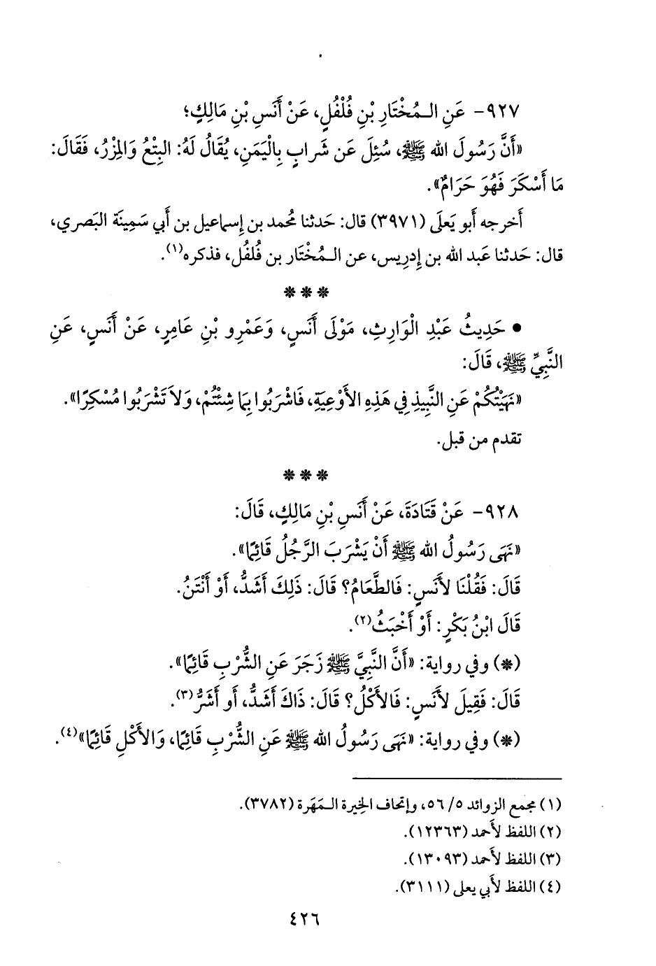٩٢٧ - عن المختار بن فلفل، عن أَنس بن مالك؛