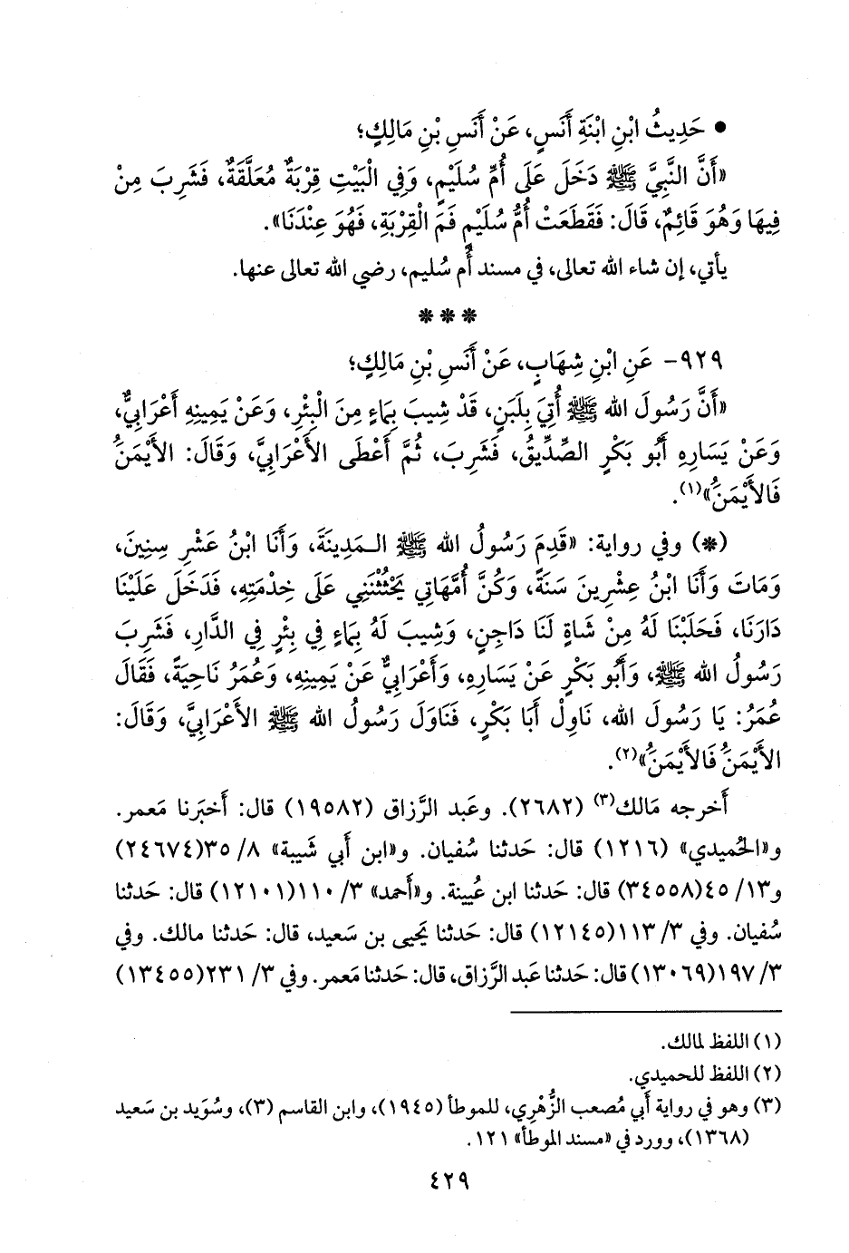 ٩٢٩ - عن ابن شهاب، عن أَنس بن مالك؛