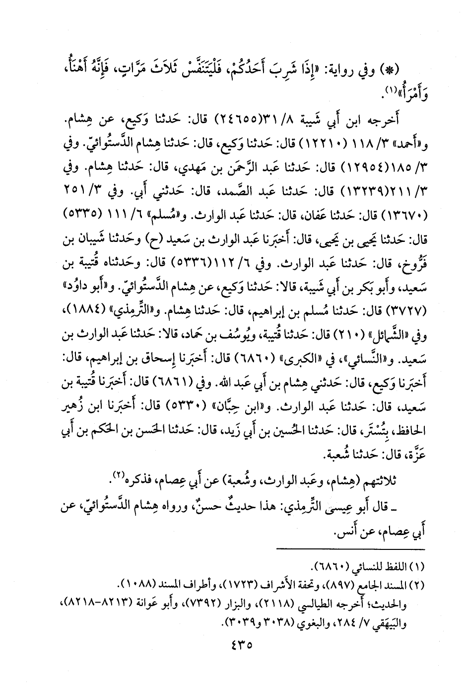 - قال التِّرمِذي: هذا حديثٌ حسنٌ، ورواه هشام الدَّستوائي، عن أبي عصام، عن أَنس.