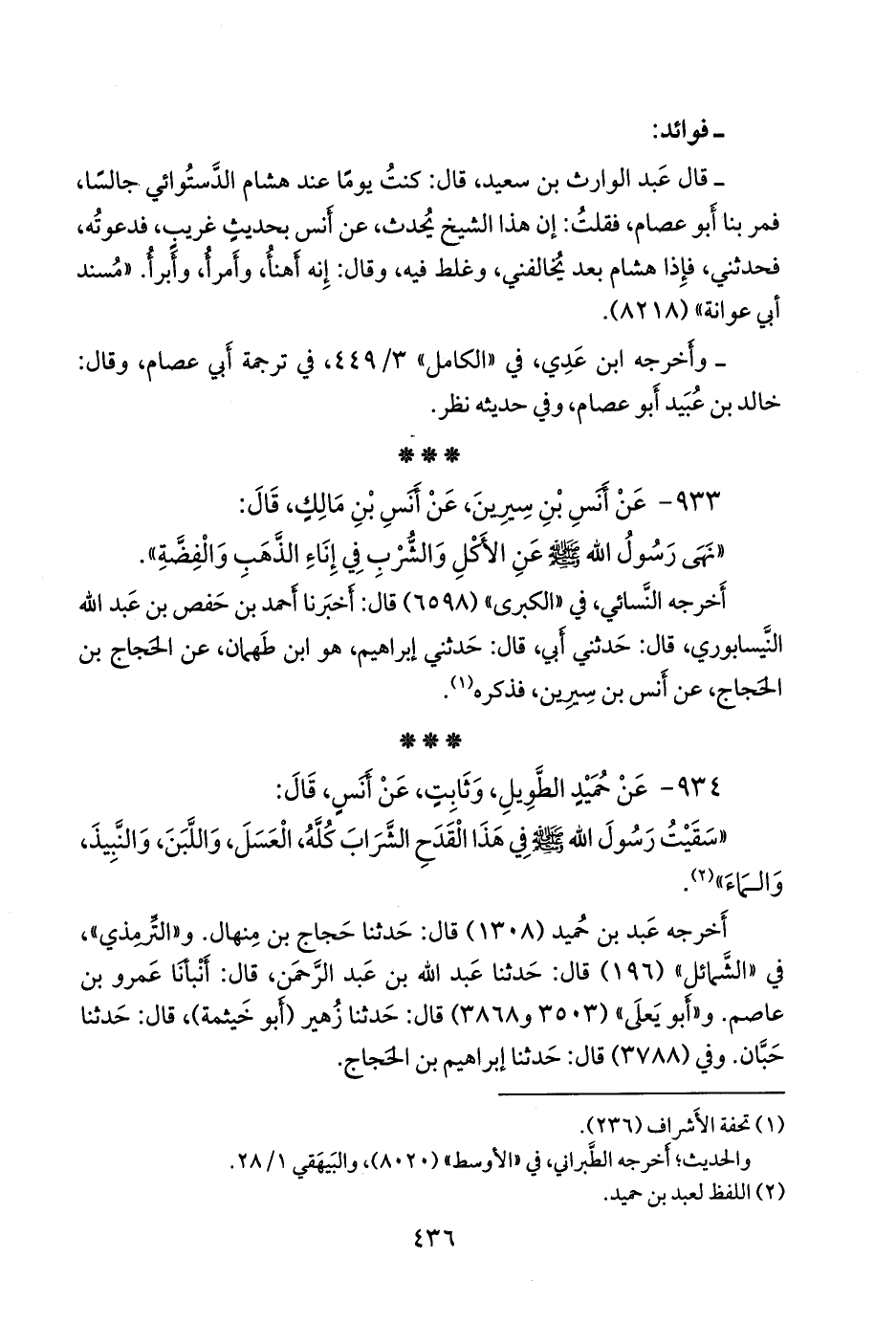 ٩٣٣ - عن أَنس بن سِيرين، عن أَنس بن مالك، قال: