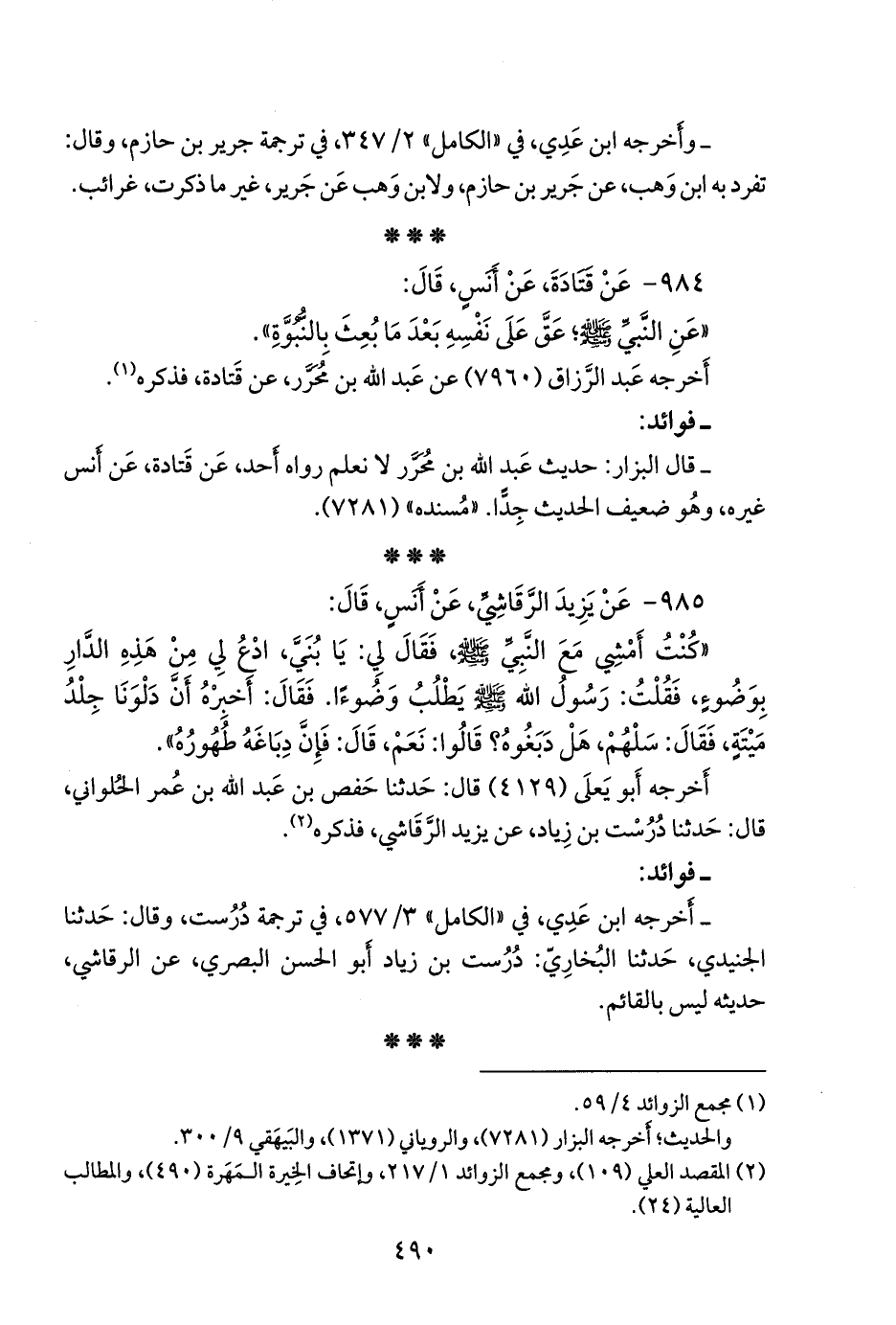 (¬١) المقصد العَلي (١٠٩)، ومَجمَع الزوائد ١/ ٢١٧، وإتحاف الخِيرَة المَهَرة (٤٩٠)، والمطالب العالية (٢٤).