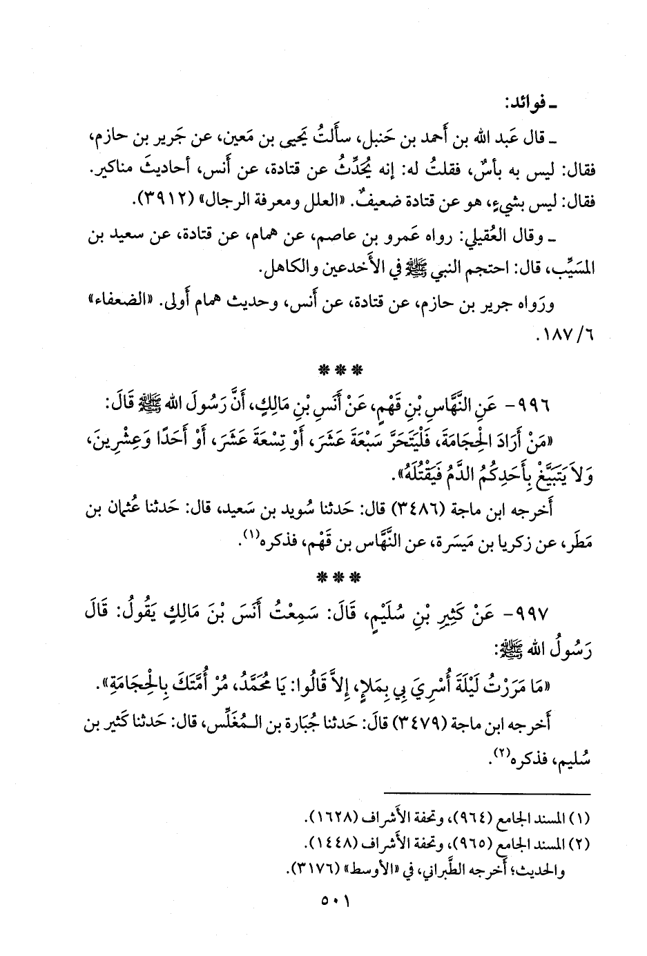 ٩٩٦ - عن النهاس بن قهم، عن أَنس بن مالك، أن رسول الله صَلى الله عَليه وسَلم قال: