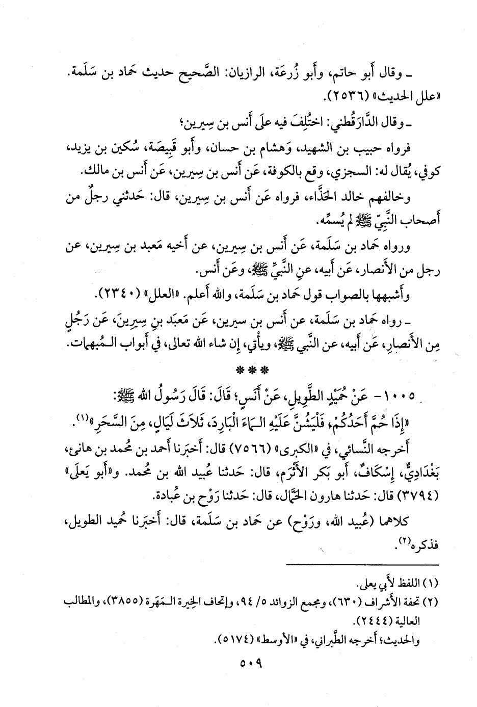 ١٠٠٥ - عن حميد الطويل، عن أَنس؛ قال: قال رسول الله صَلى الله عَليه وسَلم: