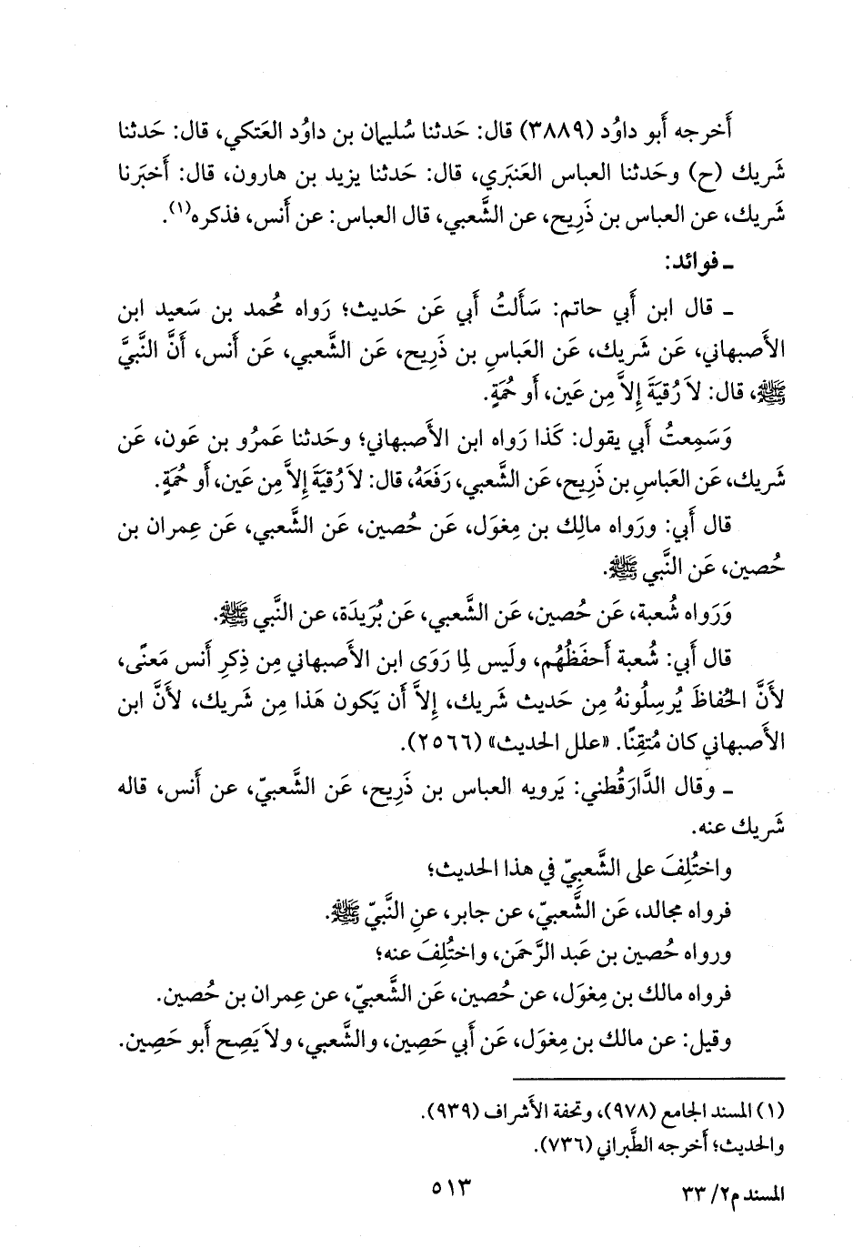 وسمعتُ أَبي يقول: كذا رواه ابن الأَصبهاني؛ وحدثنا عَمرو بن عَون، عن شَريك، عن العباس بن ذَريح، عن الشعبي، رفعه، قال: لا رُقية إِلا من عَين، أَو حُمَة.