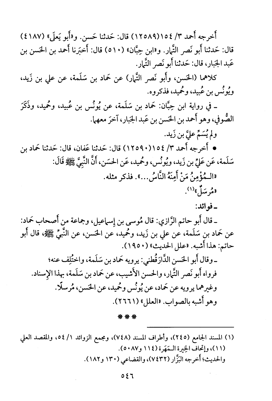 - قلنا: إِسناده ضعيفٌ؛ قال أَبو حاتم الرازي: قال موسى بن إسماعيل، وجماعة من أصحاب حماد: عن حماد بن سلمة، عن علي بن زيد، وحميد، عن الحسن، عن النبي صَلى الله عَليه وسَلم قال أَبو حاتم: هذا أشبه. «علل الحديث» (١٩٥٠).