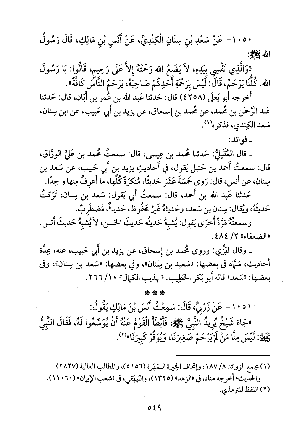 ١٠٥٠ - عن سعد بن سنان الكندي، عن أَنس بن مالك، قال رسول الله صَلى الله عَليه وسَلم: