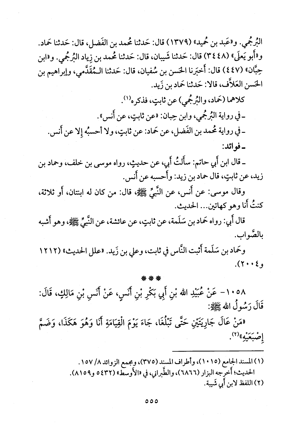 ١٠٥٨ - عن عُبيد الله بن أَبي بكر بن أنس، عن أَنس بن مالك، قال: قال رسول الله صَلى الله عَليه وسَلم: