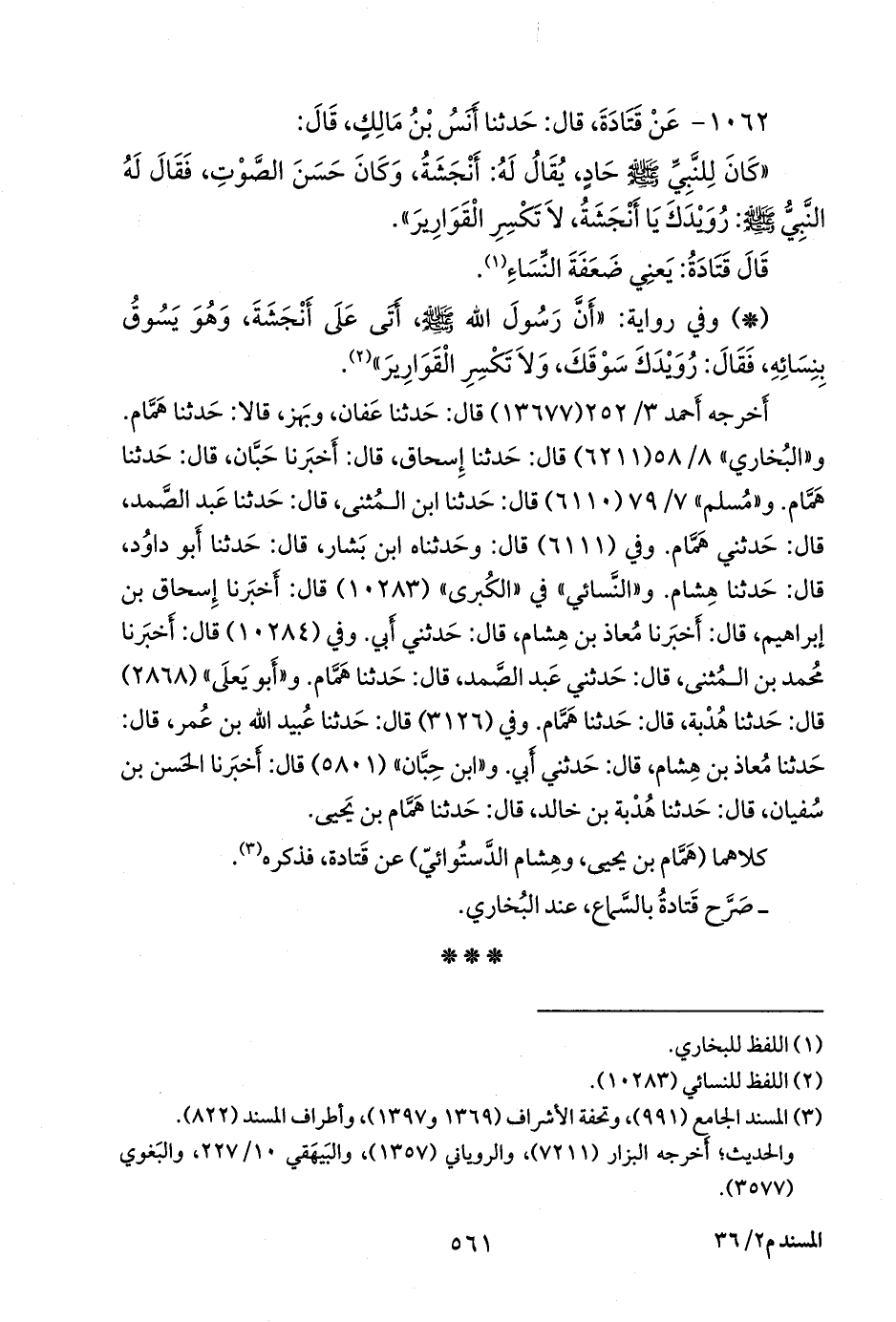 ١٠٦٢ - عن قتادة، قال: حدثنا أَنس بن مالك، قال: