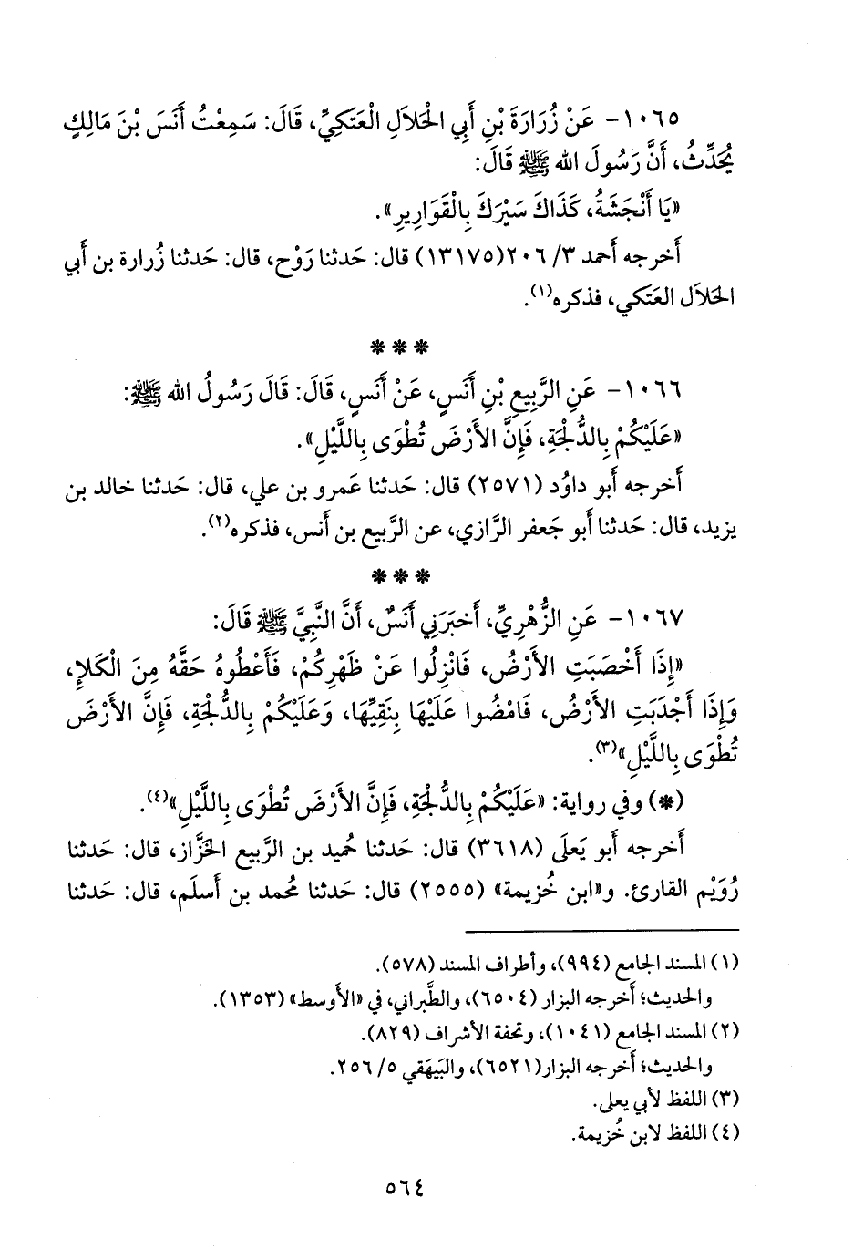 ١٠٦٥ - عن زُرارة بن أبي الحلال العتكي، قال: سمعت أَنس بن مالك يحدث، أن رسول الله صَلى الله عَليه وسَلم قال: