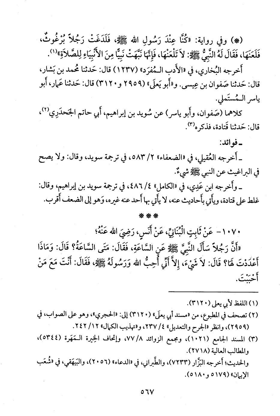 ١٠٧٠ - عن ثابت البُنَاني، عن أَنس، رضي الله عنه؛