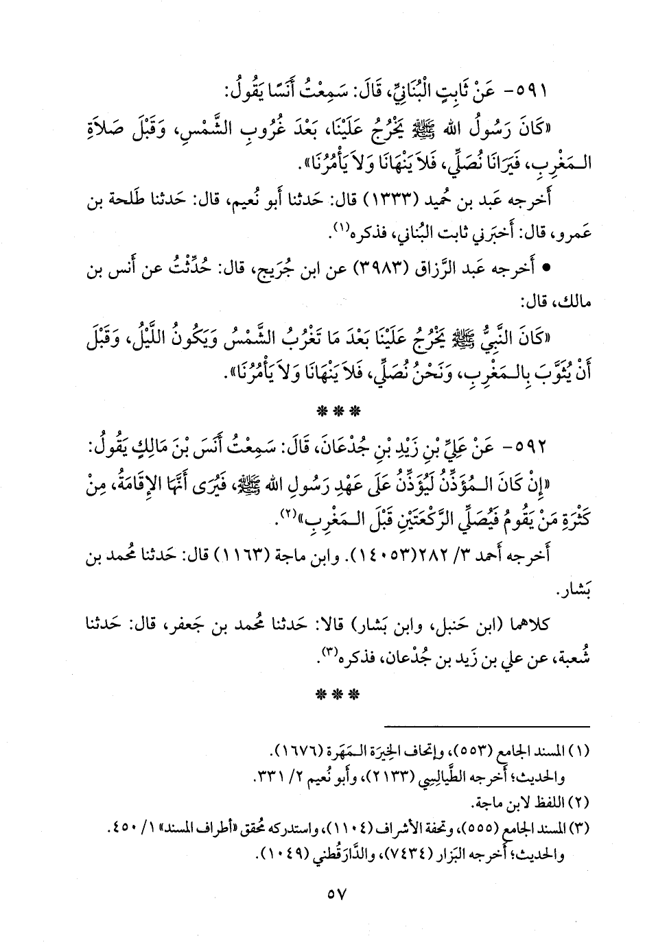 «كان رسول الله صَلى الله عَليه وسَلم يخرج علينا، بعد غروب الشمس، وقبل صلاة المغرب، فيرانا نصلي، فلا ينهانا ولا يأمرنا».