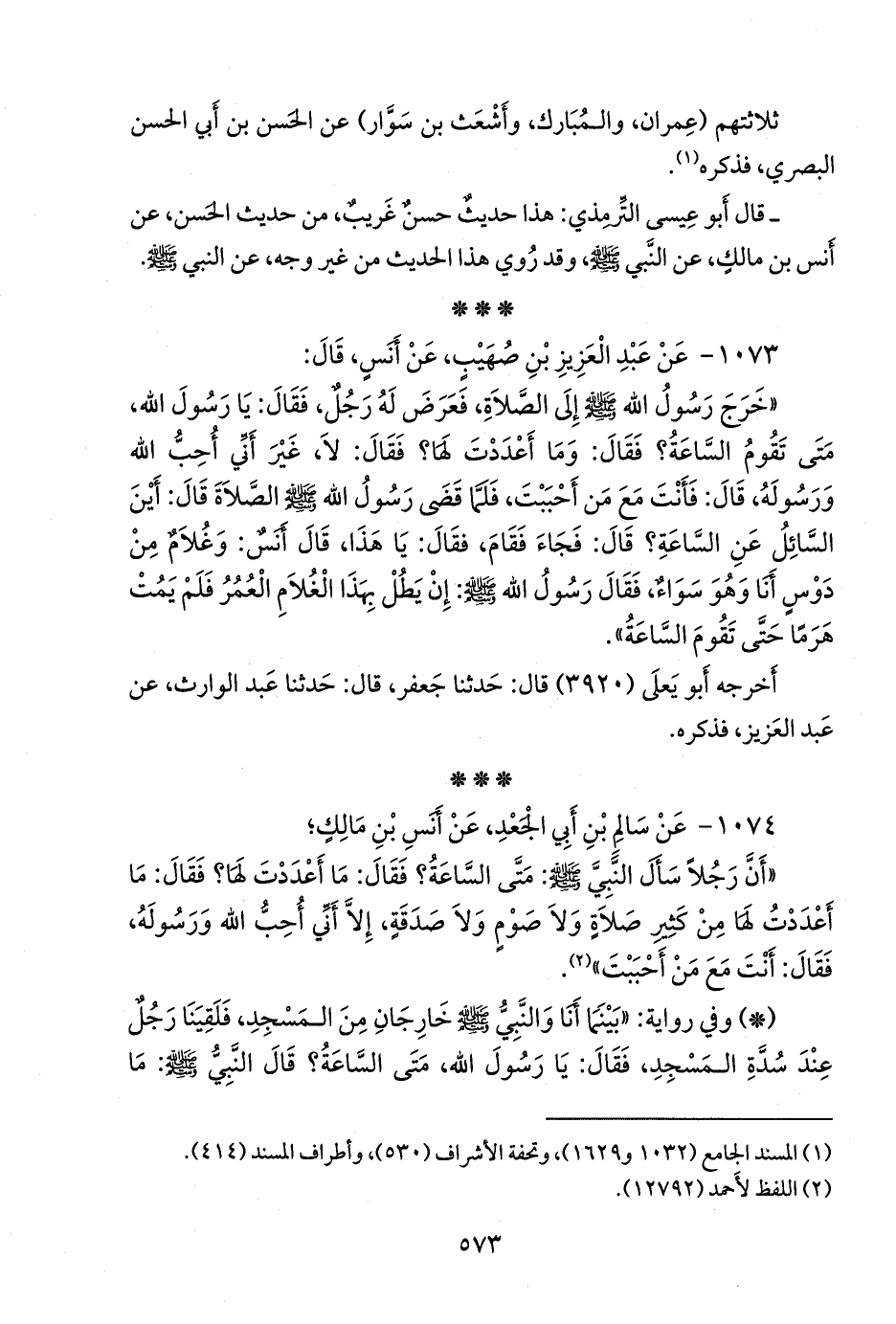 ١٠٧٣ - عن عبد العزيز بن صُهَيب، عن أَنس، قال: