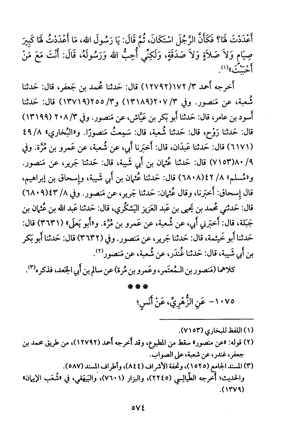 ١٠٧٥ - عن محمد بن مسلم بن شهاب الزُّهْري، عن أَنس؛