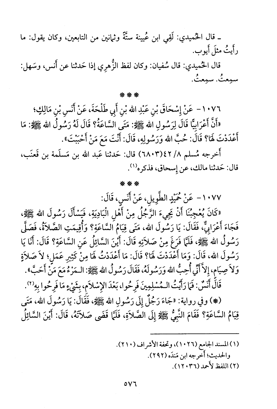 ١٠٧٦ - عن إسحاق بن عبد الله بن أبي طلحة، عن أَنس بن مالك؛