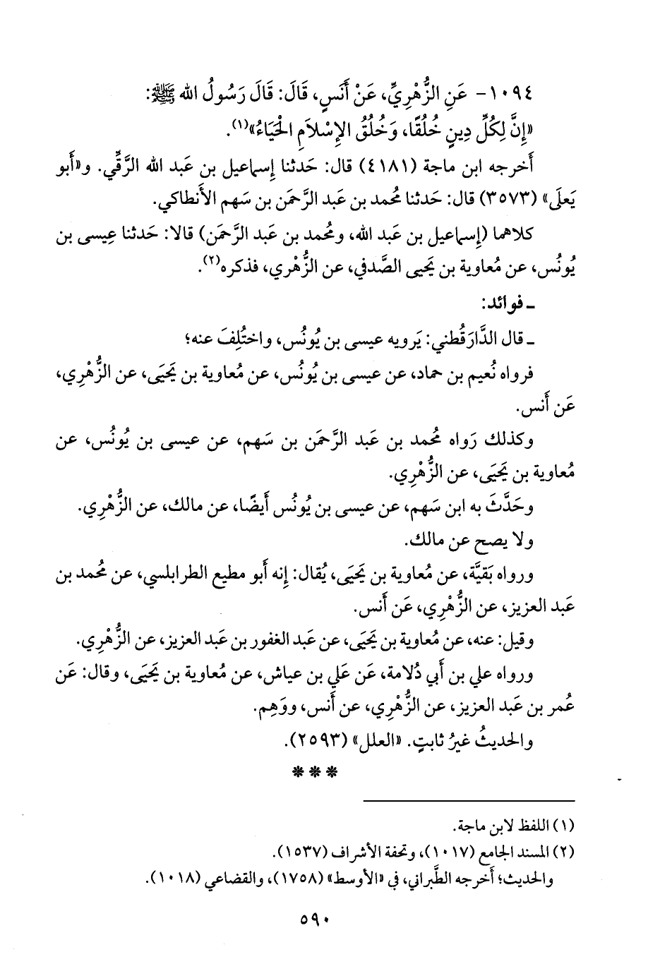 ١٠٩٤ - عن محمد بن مسلم بن شهاب الزُّهْري، عن أَنس، قال: قال رسول الله صَلى الله عَليه وسَلم: