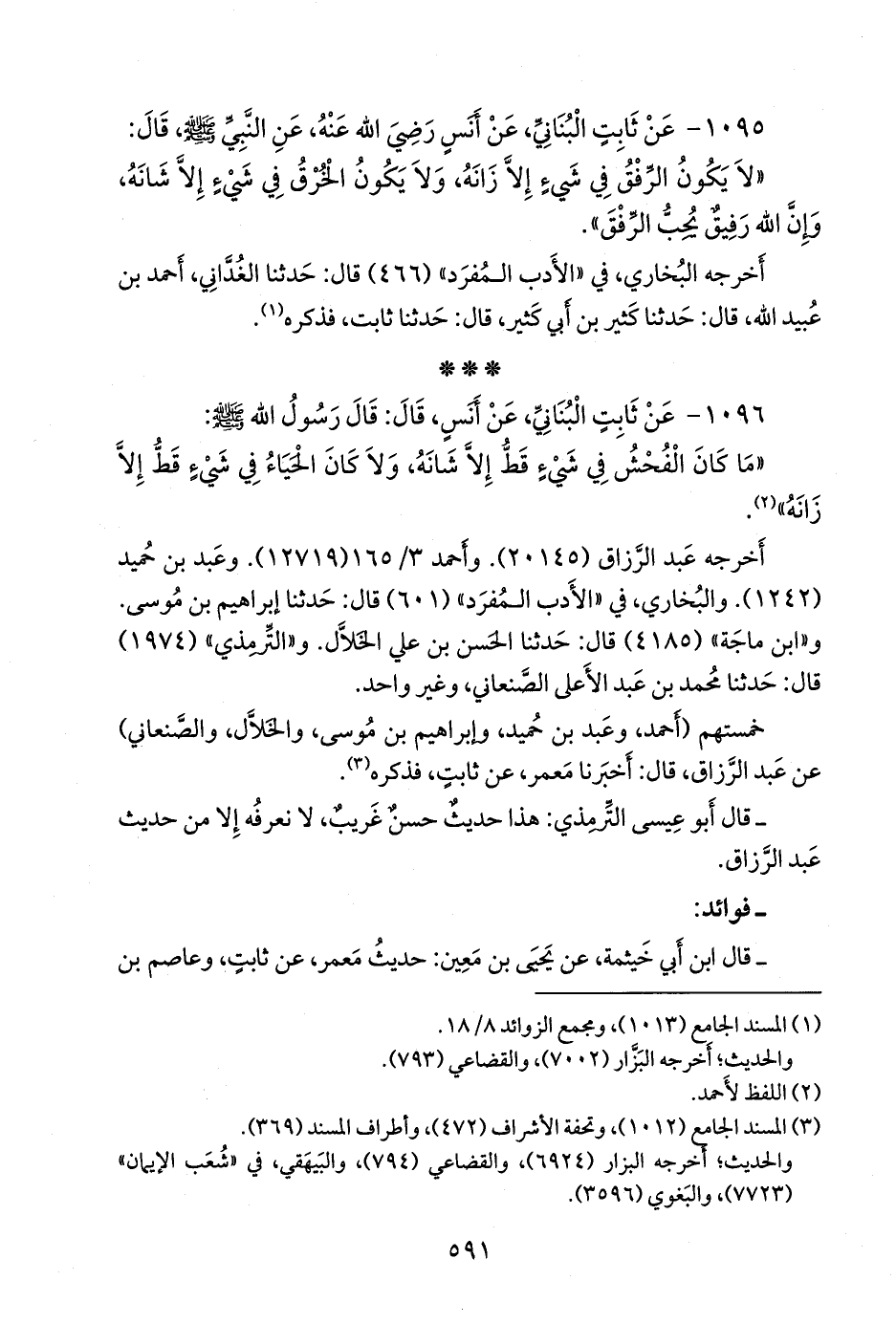 ١٠٩٦ - عن ثابت البُنَاني، عن أَنس، قال: قال رسول الله صَلى الله عَليه وسَلم:
