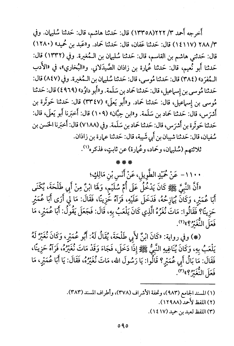 ١١٠٠ - عن حميد الطويل، عن أَنس بن مالك؛