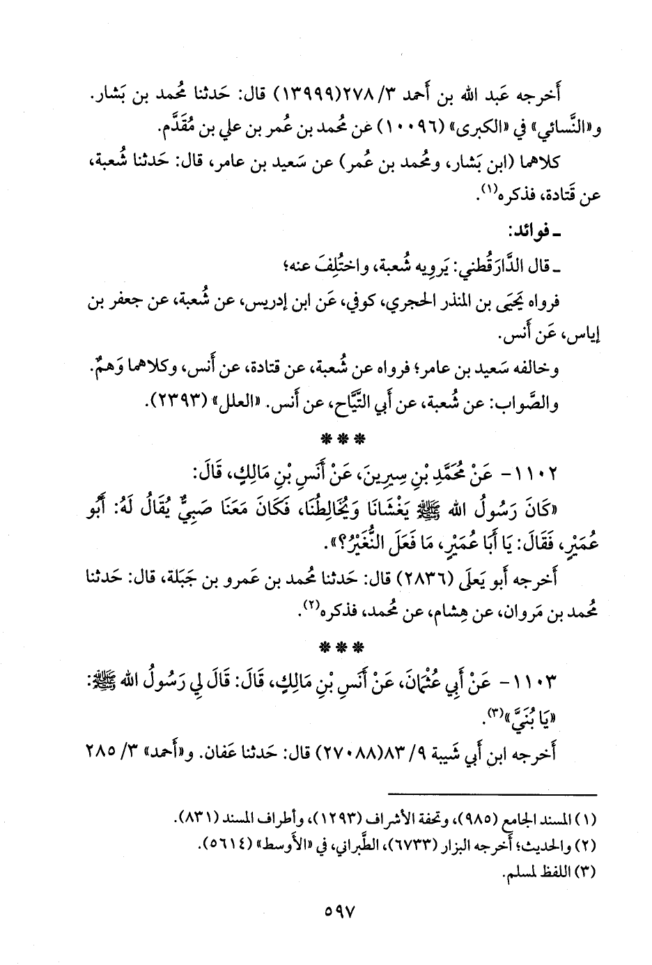 ١١٠٣ - عن أبي عثمان، عن أَنس بن مالك، قال: قال لي رسول الله صَلى الله عَليه وسَلم: