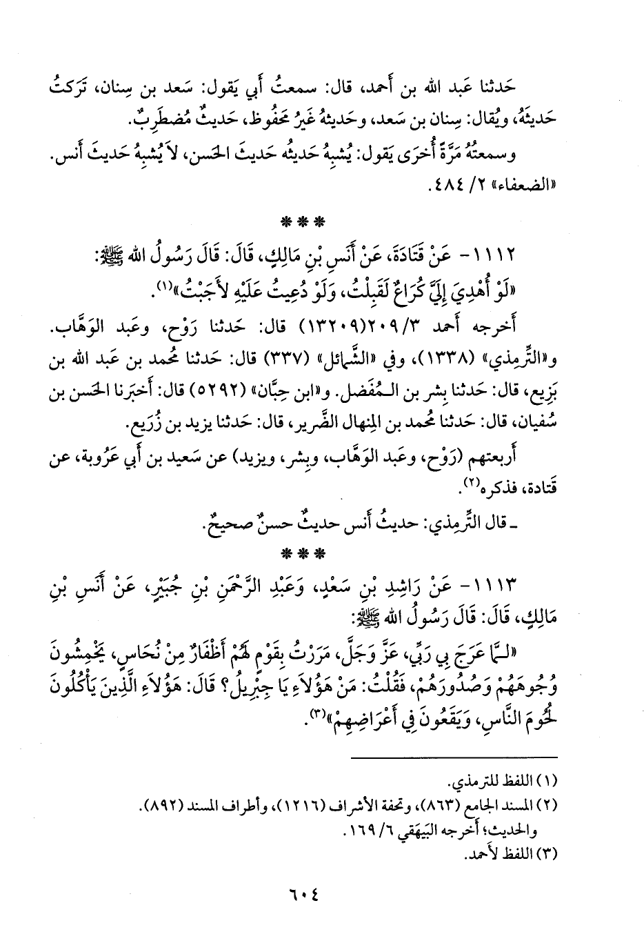 ١١١٣ - عن راشد بن سعد، وعبد الرَّحمَن بن جبير، عن أَنس بن مالك، قال: قال رسول الله صَلى الله عَليه وسَلم: