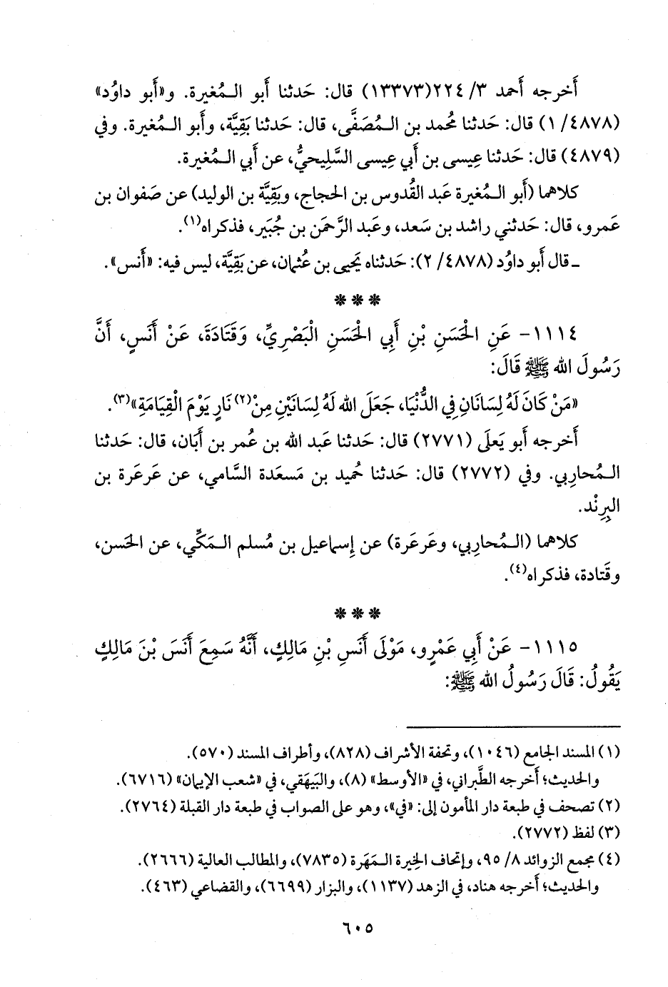 ١١١٤ - عن الحسن بن أبي الحسن البصري، وقتادة، عن أَنس، أن رسول الله صَلى الله عَليه وسَلم قال: