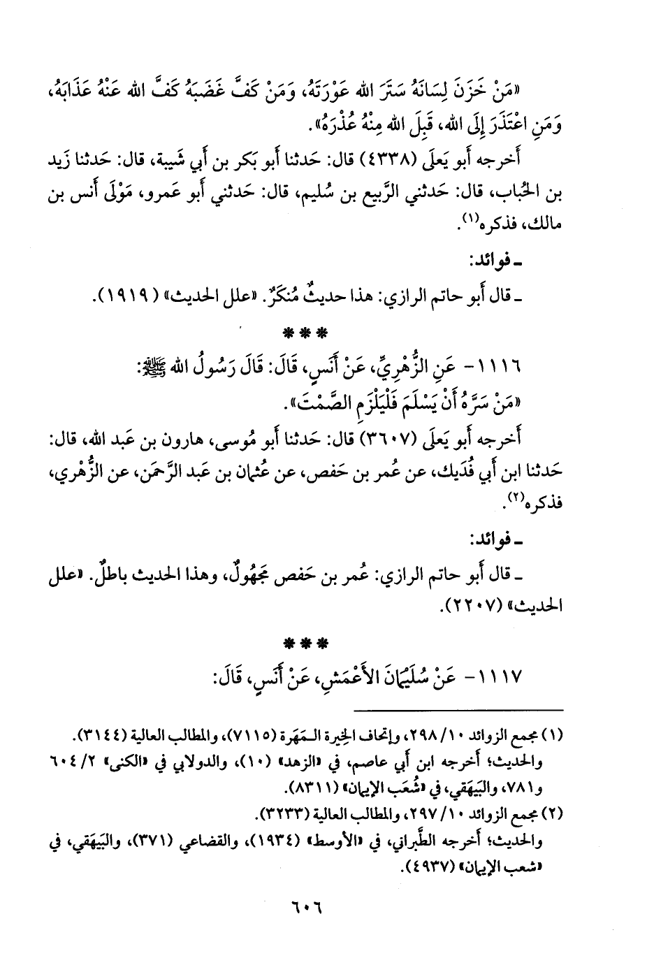 (¬١) مَجمَع الزوائد ١٠/ ٢٩٧، والمطالب العالية (٣٢٣٣).