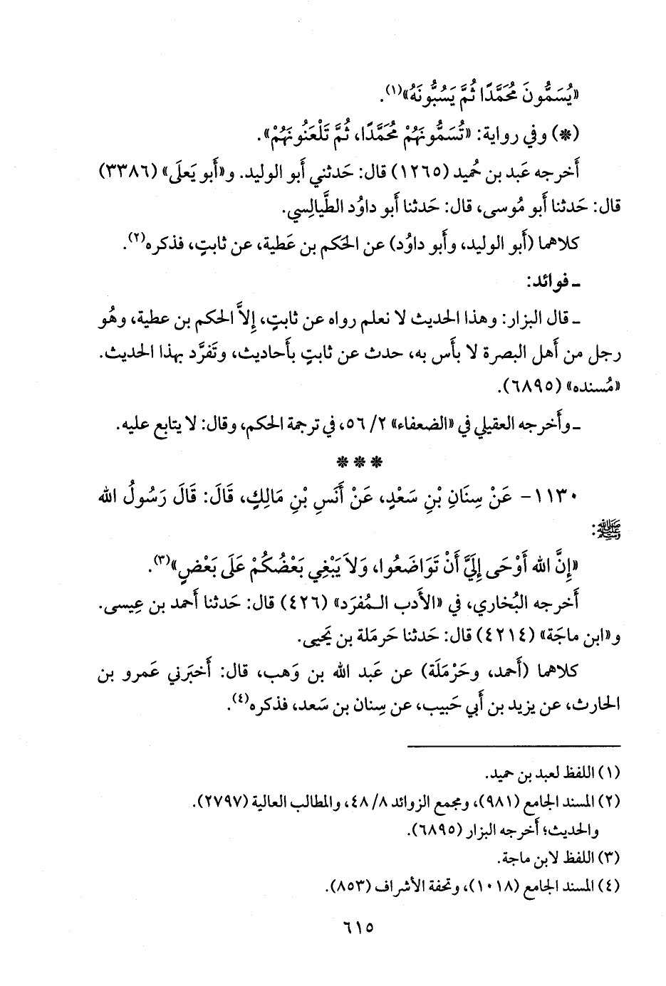 ١١٣٠ - عن سنان بن سعد، عن أَنس بن مالك، قال: قال رسول الله صَلى الله عَليه وسَلم: