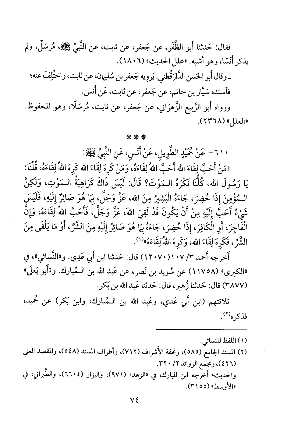 ٦١٠ - عن حميد الطويل، عن أنس، قال: قال رسول الله صلى الله عليه وسلم:
