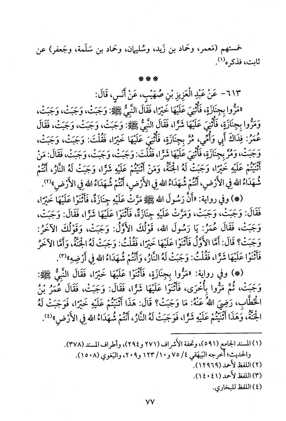 ٦١٣ - عن عبد العزيز بن صُهَيب، عن أَنس، قال: