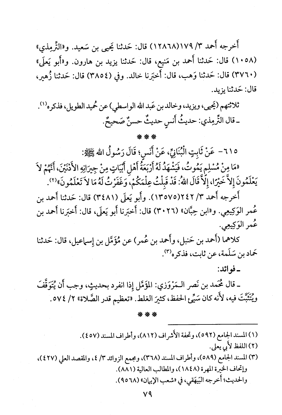 (¬٢) المسند الجامع (٥٨٩)، وأطراف المسند (٣٦٨)، ومَجمَع الزوائد ٣/ ٤، والمقصد العَلي (٤٢٧)، وإتحاف الخِيرَة المَهَرة (١٨٤٨)، والمطالب العالية (٨٨١).