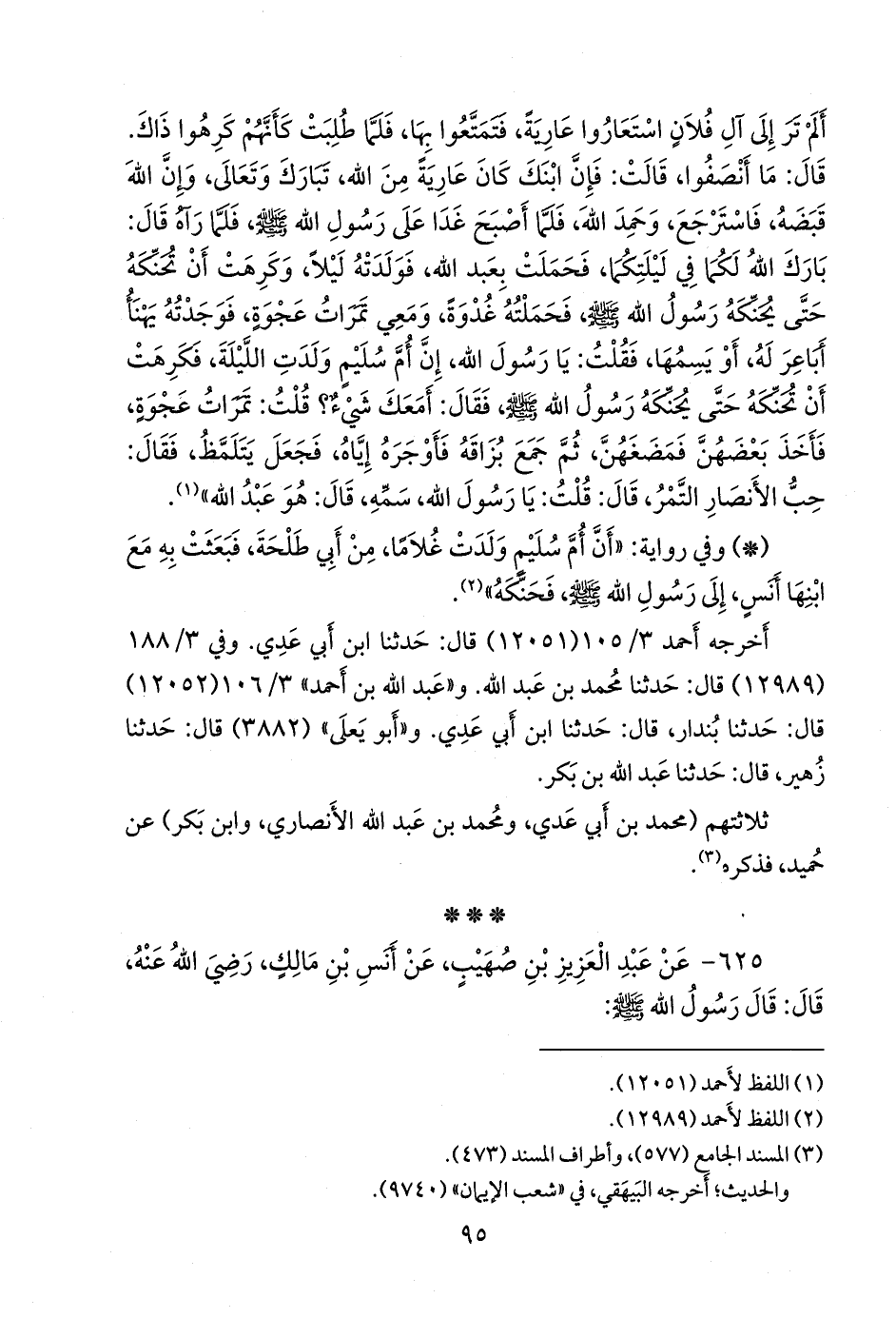 ٦٢٥ - عن عبد العزيز بن صُهَيب، عن أَنس بن مالك، رضي الله عنه، قال: قال رسول الله صَلى الله عَليه وسَلم: